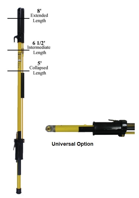 Catalog # 8158-80-U TEL-O-POLE® Shotgun Stick with Universal Option Retracted Length 5 ft. 1 inch Operating Lengths 6’ 6," 8’ Weight 5.8 lbs. Optional Case Not included # C-35