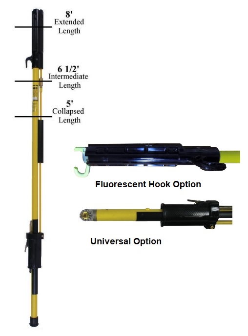 Catalog # 8158-80-U-F Tel-O-Pole® Shotgun Stick With Universal And Fluorescent Hook Options Retracted Length 5 Ft. 1 Inch Operating Lengths 6’ 6," 8’ Weight 5.8 Lbs. Optional Case Not Included # C-35