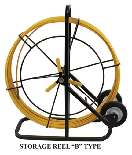 Duct Rodders - Type B Reel O 7/16 Inch Fiberglass Rod Consist Of Glass Fibers Impregnated With Resin And Cross Wrapped To Form A Compact, Tightly Bound Core. Length: 1,000 Ft. O An Outside Jacket Of Tough, Durable, Smooth Plastic Prevents Wear And Splinter Effects While Sliding Easily.