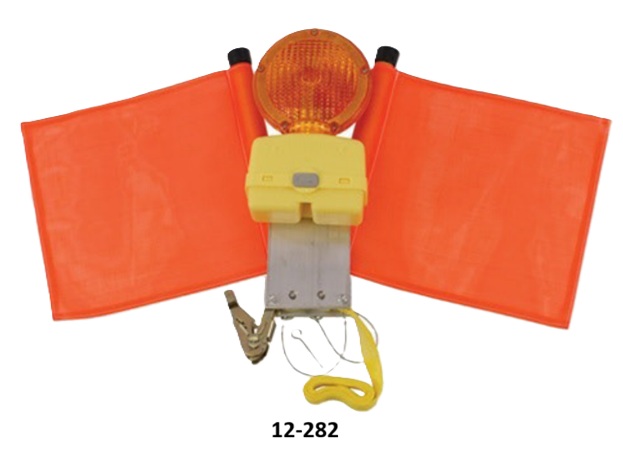 Pole Warning Flag And Light - Single Holder, Ratchet & Strap, Red/Amber Light