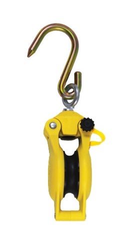 Side Opening Block With Swivel Meat Hook O Block And Sheave Constructed Of Rugged Nylon Fiberglass Reinforced High Dielectric Material O Reinforced 1/2" Diameter Axle And Swivel Bearings O 3" Sheaves - Block Can Accommodate Rope Up To 5/8" Diameter O Provided With Either Side Opening Or Closed Block O Blocks Are Rated With 3-1 Safety Factor O Working Load Limit 1,000 Lbs