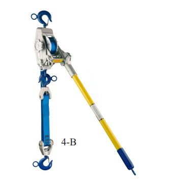 Catalog # 4-B Lug-All Strap Hoist Capacity 2 Ton Double Pull Distance Minimum 27 Inches Double Pull Distance Maximum 4 Ft. 1 In. Capacity 1 Ton Single Pull Distance Minimum 19 Inches Single Pull Distance Maximum 9 Ft. 4 In. Strap Length 10 Ft. Handle Length 38 Inches Weight 16 Lbs.