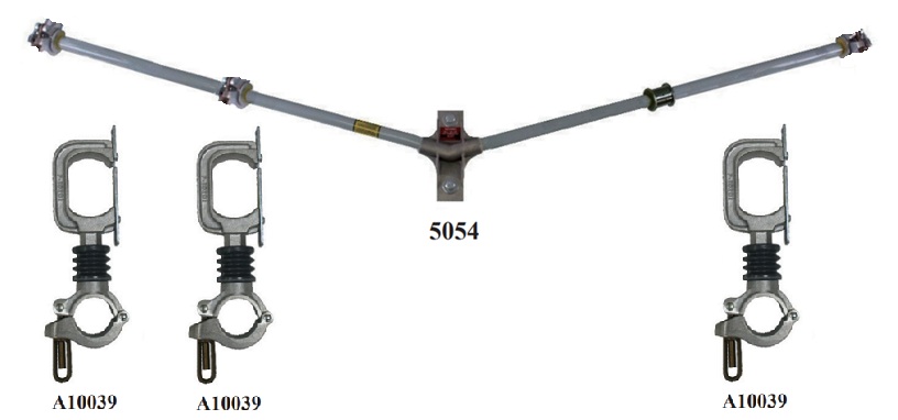 Temporary Cross Arm O The Temporary Cross Arm Is An Excellent Tool For Changing Cross Arms. Solid Fiberglass Arms For Maximum Strength. Rated For 34.5Kv Phase To Phase. O Two Piece Assembly Makes Installation Easy And Fast O The Mounting Base Includes A Ratchet And Strap Assembly For Lightweight And Safety. U-Shape Design Fits Over Pole Top Pin. O Fiberglass Arm Includes Two Standard Conductor Holders A10002 With Insulators And Will Accept Conductors Up To 1 1/16" O.D. Conductor Latches Are Hot Stick Operable. O Also Available A10039 Large Conductor Holder - 2 5/8" Opening O Captive Bolts And Washers On Arm Assembly Enable The Arm To Be Mounted To The Base. No Tools Are Required. O Load Limit Is 150 Pounds Per Side