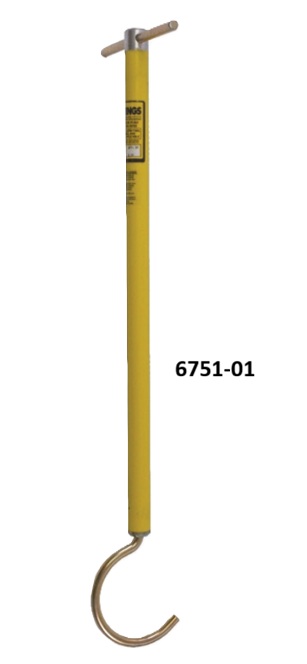 One Piece Fiberglass Cable Handling Tool O 3-1/2" Diameter Hook For Easy Hooking Of Cable O 1-1/4" Diameter Foam Filled Fiberglass Shaft To Prevent Condensation O 3/8" Diameter Steel Handle