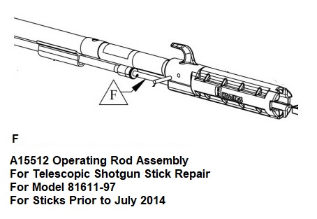 Operating Rod Assembly For Telescopic Shotgun Stick Repair For Model 81611-97 Shotgun Stick Repair - For Sticks Prior To July 2014