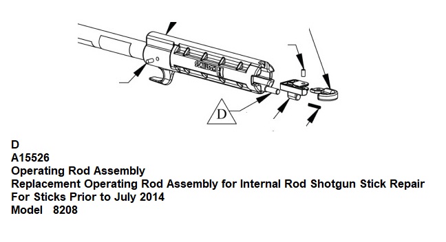 Catalog # A15526 Operating Rod Assembly Replacement Operating Rod Assembly For Internal Rod Shotgun Stick Repair For Sticks Prior To July 2014 Model 8208