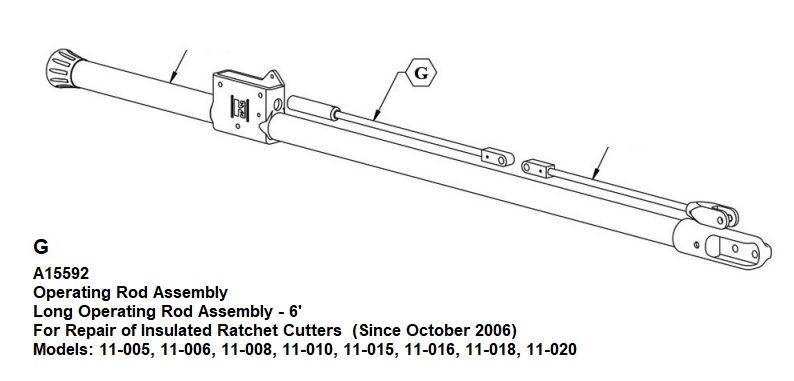 Catalog # A15592 Operating Rod Assembly Long Operating Rod Assembly - 6' For Repair Of Insulated Ratchet Cutters (Since October 2006) Models: 11-005, 11-006, 11-008, 11-010, 11-015, 11-016, 11-018, 11-020