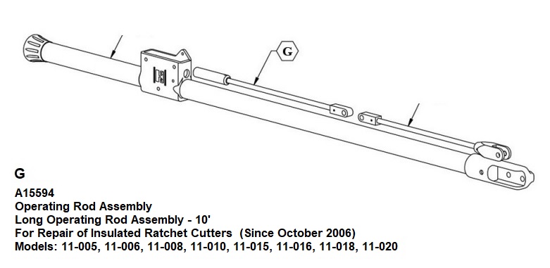 Catalog # A15594 Operating Rod Assembly Long Operating Rod Assembly - 10' For Repair Of Insulated Ratchet Cutters (Since October 2006) Models: 11-005, 11-006, 11-008, 11-010, 11-015, 11-016, 11-018, 11-020