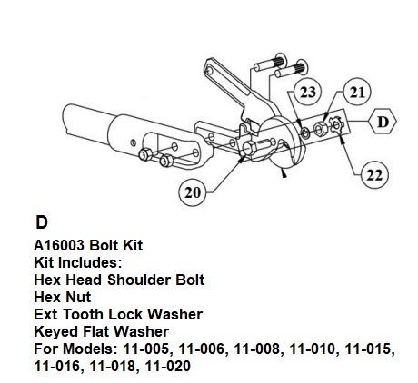 Kit Includes: O Hex Head Shoulder Bolt O Hex Nut O Ext Tooth Lock Washer O Keyed Flat Washer