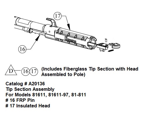 Catalog # A20136 Tip Section Assembly For Models 81611, 81611-97, 81-811 # 16 Frp Pin # 17 Insulated Head