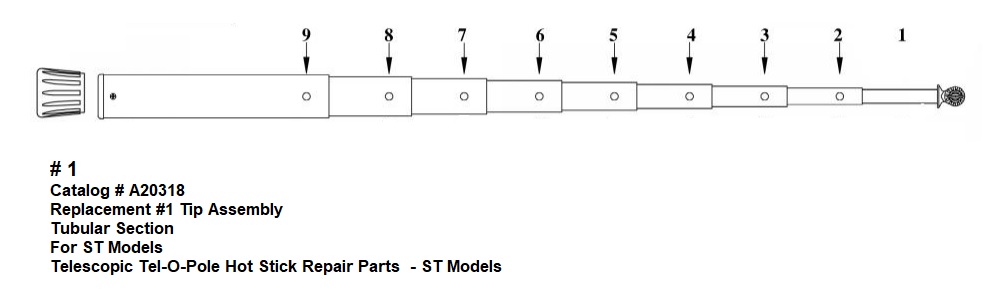 Catalog # A20318 Replacement #1 Tip Assembly Tubular Section For St Models Telescopic Tel-O-Pole Hot Stick Repair Parts - St Models