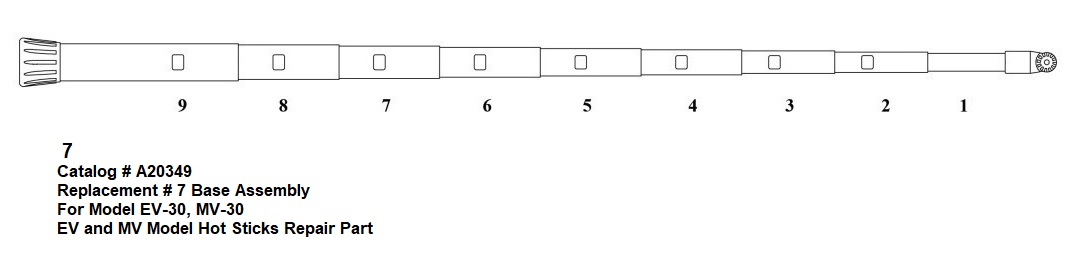 Catalog # A20349 Replacement # 7 Base Assembly For Model Ev-30, Mv-30 Ev And Mv Model Hot Sticks Repair Part Note: When Base Section Part Numbers A20348, A20349, And A20350 Are Ordered For Repair, They Include A Base Cap Installed.