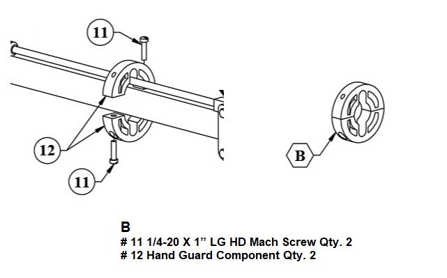 Catalog # A30010 Hand Guard Component Includes: 1/4-20 X 1Inch Lg Hd Mach Screw Qty. 2 Hand Guard Component Qty.2