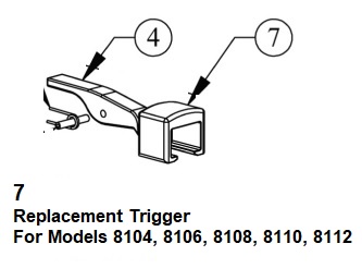 Catalog # P10003 Replacement Trigger Fiixed Length Shotgun Stick Repair Parts Models: 8104, 8106, 8108, 8110, 8112
