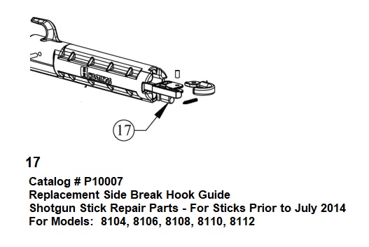 Catalog # P10007 Replacement Side Break Hook Guide Shotgun Stick Repair Parts - For Sticks Prior To July 2014 For Models: 8104, 8106, 8108, 8110, 8112