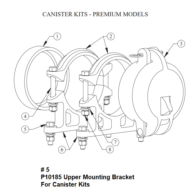 Upper Mounting Bracket For Canister Kits Wth Aluminum Caps And Lid Assemblies #01-3400-P 6-5/8" O.D. Schedule 30/40 Pvc And, Canister Mounting Bracket Kit # 01-3400-25-P.