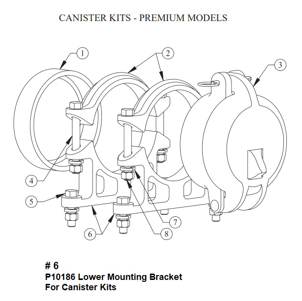Lower Mounting Bracket For Canister Kits Wth Aluminum Caps And Lid Assemblies #01-3400-P 6-5/8" O.D. Schedule 30/40 Pvc And Canister Mounting Bracket Kit # 01-3400-25-P. Fits 6 5/8 Inch Kit.