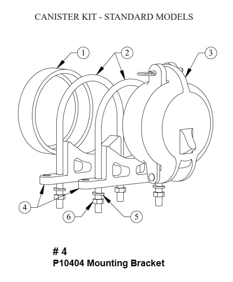 Mounting Bracket For -- Canister Kits With Aluminum Caps And Lid Assemblies And -- Canister Mounting Kits Models: 01-3200. 01-3300. 01-3400, 01-3200-25. 01-3300-25