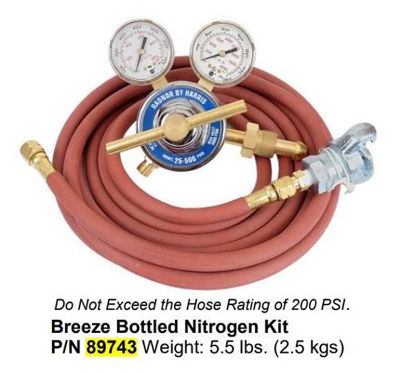 P/N 89743 Breeze Bottled Nitrogen Kit Do Not Exceed The Hose Rating Of 200 Psi. Weight: 5.5 Lbs. (2.5 Kgs) For Breeze Blower