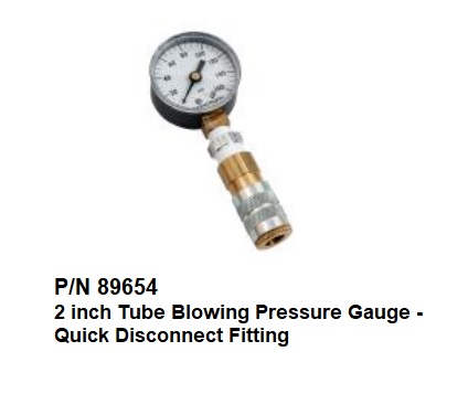 P/N 89654 2 Inch Tube Blowing Pressure Gauge - Quick Disconnect Fitting Used With The Gmp Tornado Tube Blowing Conversion Kit. Weight 5 Lbs.