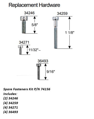 P/N 74156 Gmp General Machine Products Spare Fasteners Kit Includes: (2) 34246 (4) 34259 (4) 34271 (4) 36493 For Airstream Cable Blower