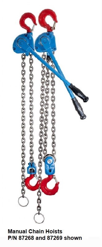 P/N 87269 Chain Hoist R-Ch-6000 3 Ton Chain Hoist Capacity: 3 Ton Approx Pull: 75 Lbs. Handle: 17 In. Head: 15-7/8 In. Stand. Lift: 54 In. Weight 21.25 Lbs. (9.63 Kg)