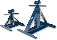 660 Small Screw Type Reel Stand 27 Lbs. Description All Steel Construction Rugged Design For Job Site Use Wide Base For Added Stability Capacity - 2,500 Lbs. 28" - 56" Reel Diameter Height - 13" Min. To 27" Max. Adjustment Pins Wired To Stands Roller Heads Have Self-Lubricating Bearings Made In The Usa