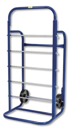 501 Dolly Cart Description 54 ¾" Length X 27" Width X 24" Height Capacity - Holds 6 - 2,500’ Spools Up To 16" Diameter Or 15 - 500’ Spools Heavy Duty Dolly Type Cart Can Be Used Vertically Or Horizontally Rods To Hold Wire Reels Have Spring Clips On Each End For Easy Loading/Unloading Large 8" Wheels For Easy Mobility Wire Guide On Handle For Horizontal Dispensing Will Fit Through 28" Door Made In The Usa
