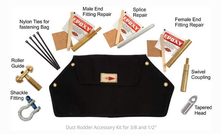 P/N 88426 Duct Rodder Accessory Kit For 1/2" Tonable Rod Weight: 2 Lbs. (.91Kg) Includes P/N Description 09339 Shackle Fitting 89382 Swivel Coupling 89352 Tapered Head 89360 Roller Guide 88415 Male End Repair Kit 88419 Splice Repair 88416 Female End Repair Kit 32645 Tie Wraps 32646 Canvas Pouch 89394 Sonde Adapter M10X1.5 Thread