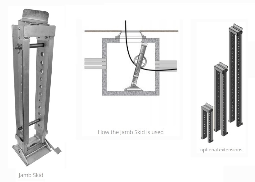 P/N 70646 Jamb Skid Overall Height Ranging From 114 In. To 151 In. (289.6 To 383.5Cm). Includes 109 In. (276.9Cm) Extension. Rated At 5,000 Lbs. (22.24Kn) Cable Tension. Weight 200 Lbs. (90.7Kg) Used To Support Quadrant Blocks And Sheaves When Pulling Cable Through Underground Conduit. Lightweight, Constructed Primarily Of Aluminum Corrosion Resistant Top Swivels For Easier Placement Within Vault Includes (2) 1 5/16 In. (33Mm) Diameter Locking Pins (71717) To Lock The Jamb Skid Height And Secure The Sheave Or Quadrant Block Accepts All Gmp Sheaves And Quadrant Blocks With Widths Up To 7 In. (178Mm) Includes A Base Unit To Accept The Upper Extensions Do Not Exceed 10,000 Lbs. (44.48Kn) Cable Tension When Using The Short Or Intermediate Extension Do Not Exceed 5,000 (22.24Kn) Lbs. Cable Tension When Using The Long Extension