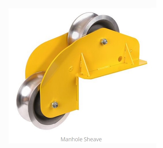 The Manhole Sheave Or “Pittsburgh” Is Used To Guide Pulling Line Or Cable Over The Manhole Edge When Placing And Removing Cable In Manholes Which Are Equipped With Pulling In Irons To Support A Sheave And Shackle Assembly. Consists Of A Reinforced, Heat-Treated Wrought Aluminum Alloy Frame With Two Self-Lubricating, Bronze Bushed Aluminum Sheaves The Frame Also Has A Hole In Each Side Plate So You Can Insert A 1 1/4 In. (32Mm) Dia. Digging Bar Parallel To The Ground To Keep The Sheave From Being Knocked Into The Manhole