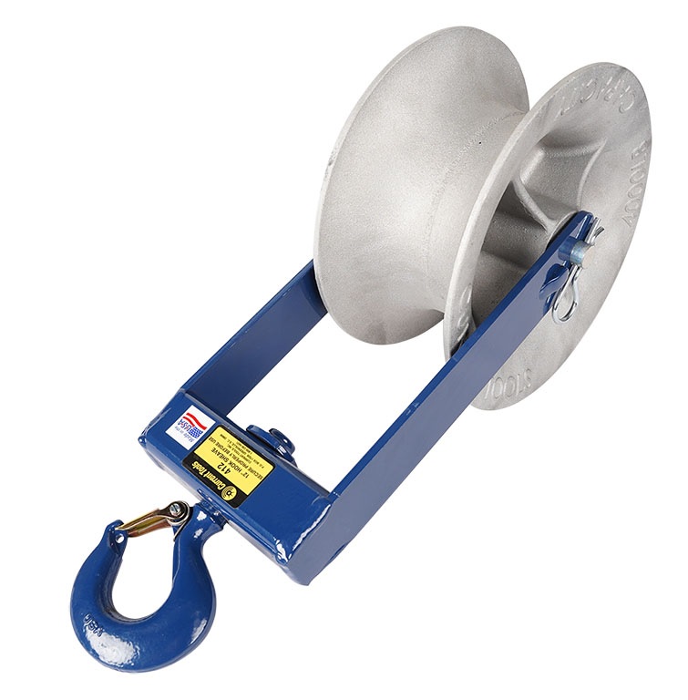 412 12" Diameter Hook Sheave Description 12" Diameter Hook Sheave 4000 Lb. Capacity Forged Steel Hooks With 1" Opening Welded Steel Frames 5" Wide Aluminum Sheaves With Self-Lubricating Bearings Made In The Usa