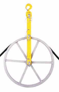 Fiber Optic Sheave & Shackle Assembly (Bicycle Wheel) The New Sheaves Are Available In Three Sizes To Accommodate The Bending Radius Of The Most Common Sizes Of Fiber Optic Cable – A 24 In. (61 Cm) Sheave, And 32 In. (81 Cm) And 40 In. (102 Cm) Split Sheaves. All Components Are Permanently Attached To The Shackle, Eliminating Any Concern About Loose Or Lost Parts. Extruded Aluminum Replaces Steel Wherever Practical. The New Components Weigh About Half As Much As Their All-Steel Counterparts, Improving Handling And Maneuverability Without Sacrificing Structural Strength Or Integrity. The 40 In. (102 Cm) Sheave, For Example, Weighs Just 23 Lb (10 Kg). Likewise, The 32 In. (81 Cm) Sheave Weighs Just 20 Lb (9 Kg), And The 24 In. (61 Cm) Just 9 Lb (4 Kg). Both An Underground And Aerial Shackle Is Available. The Underground Shackle Is Uniquely Designed With A Moveable Anti-Pinch Pin To Accommodate All Three Sheave Sizes. Both Are Designed To Be Lightweight, The Underground Shackle Weighs Just 20 Lb (9 Kg) And The Aerial Shackle Just 16 Lb (7 Kg