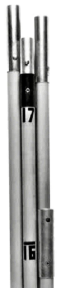 Series Lay-Up Sticks Feature Steel Hardware With Internal Spring Loaded Locking Buttons. Numbered Hash Marks Serve As Height Indicators From 13-17’. The Middle Hook Of A Wire Raising Tool Indicates 18’. (One Labeled Stick Per Set)