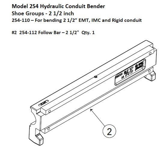 Part # 254-112 Description Follow Bar For 2.5" Emt / Imc / Rigid Conduit Qty. 1 Component Of The 2 1/2" Shoe Group Used With The Model 254 Bender