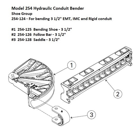Part # 254-124 Description 3 1/2 Inch Shoe Group Includes: 254-125 Bending Shoe - 3 1/2" 254-126 Follow Bar - 3 1/2" 254-128 Saddle - 3 1/2"