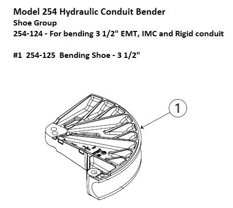 Part # 254-125 Description Bending Shoe For 3 1/2 Inch Emt / Imc / Rigid Conduit Qty. 1 Component Of The Model 254 Hydraulic Conduit Bender.