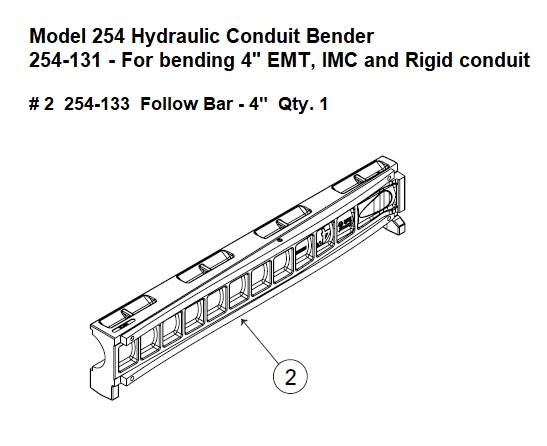 Part # 254-133 Description Follow Bar For 4 Inch Emt, Imc And Rigid Conduit Qty. 1 Component Of The Model 254 Hydraulic Conduit Bender