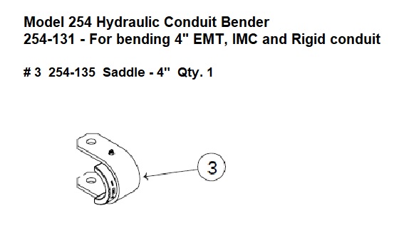 Part # 254-135 Description Saddle For 4 Inch Emt / Imc / Rigid Conduit Qty. 1 Component Of The Model 254 Hydraulic Conduit Bender