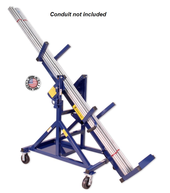 - Tilts To Allow For Easy Access Into And Out Of Elevators And Doorways - 500 Lb. Capacity - Load And Unload Conduit With Bed In Raised Or Lowered Position - Holds Standard 10' Lengths Of Conduit - Will Fit Through Standard 36" Doorway - Convenient Storage Tray - Two Rigid And Two Locking Swivel Casters For Ease Of Mobility - Powder Coated Finish - Made In Usa