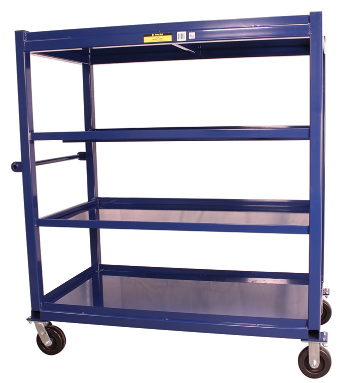 - Heavy Duty Supply Cart With Four Shelves - All Shelves Have Raised Edges To Help Prevent Parts From Sliding Off Cart - Shelves Have Center Support For Added - Frame Is Constructed Of 2" × 2" Tubing - 1,000 Lb. Load Capacity - 250 Lbs. Per Shelf - Heavy Duty Casters (2 Swivel, 2 Fixed) - Will Fit Through 32" Doorway - Durable Powder Coated Finish - Made In The Usa