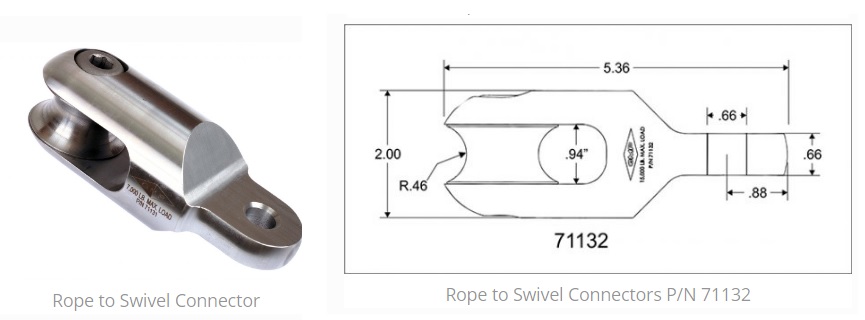 P/N 71132 Rope To Swivel Connector 21/32 In. Rope To Swivel Connector Rated @ 15,000 Lbs. (6804Kg) Max Load Can Be Used With Gmp Swivel P/N 70139 Weight 2.3 Lbs. (1.0 Kg)