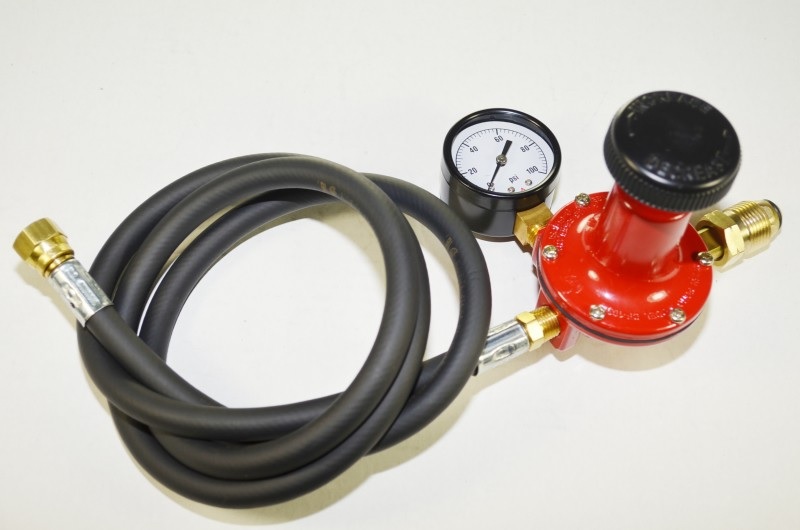 Comri-60 - Adjustable 0-60 Psi High Pressure Propane Regulator And Pressure Gauge Assembly, Includes A Pol Propane Tank Fitting, A Pressure Gauge, And 1/4 Id Ul Approved Hose.