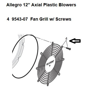 Replacement Fan Grill With Screws For The 12" Axial Plastic Blowers. 9543, 9543-15, 9543-25 (Ac) 9546, 9546-15, 9546-25 (Dc) 9548, 9548-15, 9548-25 (Ex)