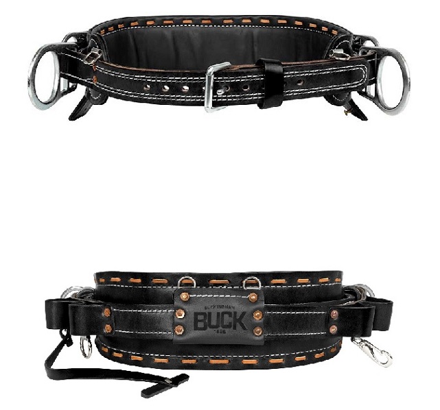 Model Number: 2000EM Product Name: 4 D-ring BODY BELT Buckle Type: Tongue Buckle Buckle Material: Steel Number of D-rings: 4 D-ring Material: Steel Belt Strap Material: Leather Back Pad Material: Leather Tape Thong: Yes Removable Belt Strap: No Floating Suspension Ring: No Full Floating D-rings: Yes Tool Loops: Yes Pouch Tabs: Yes Back Pad Width: 5.5" Belt Strap Width: 1.75" Thread / Stitching: Nylon Product Type: Work Positioning User Weight Capacity: 350 lbs (when fully equipped) Weight: 7 lbs Standards: OSHA 1910.268 and 1926.959. ASTM F887 Made in USA?: Yes