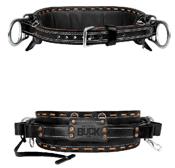 This Buckingham 4 D-ring in-line body belt (Patented) is a full float body belt with a 5 1/2" (139.7mm) foam cushioned pad reinforced with rawhide lace. Has 4 in-line D-rings (2 standard and 2 smaller.) Ideal for use with a secondary lanyard. *Available in sizes 18 - 30. Available in Black (BL), Brown (BR), or Burgundy (BU).