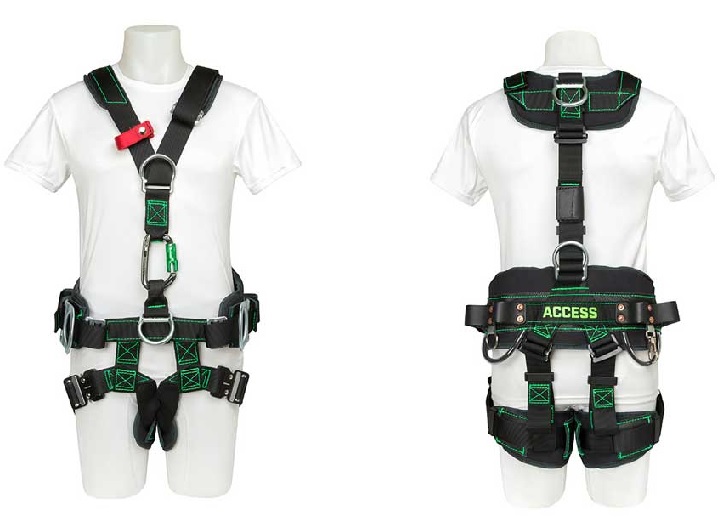 The Access™ Is A ‘Y’ Style Harness. Designed For Suspension Work. Easy To Repel. The Body Belt Combination Features Five D-Rings. 2 Work Positioning D-Rings, 2 Dorsal D-Rings, 1 Sternum D-Ring, 1 Waist D-Ring. Great For Work That Requires A Lot Movement Around Structures. Easy To Put On By Stepping Into The Belt, Pulling The ‘Y’ Over Head And Connecting A Carabiner To The 5,000 Lb. Rated Loop At The Waist. Features Shoulder Pads, And Wide Leg Pads With Patented Quick Connect Buckles For Added Comfort. The Harness Neck Features A ‘U’ Designed Stitch Pattern Making The Opening Wider Eliminating Neck Irritation. Buckle In Front And Back Adjust Height To Create A Snug Fit. Body Belt Features Tool Loops, Accessory Snap And Rings. Belt Tightens Using Two Friction Buckles In Front Of The Work Positioning D-Rings.
