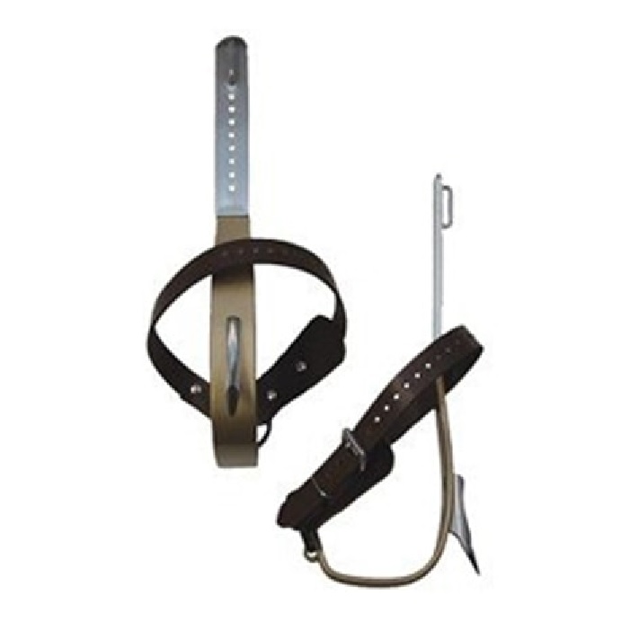 Popular Choice Titanium Pole Climbers That Have A Contoured Shank, Offset Stirrup And Dowel & Screw Replaceable Gaffs. Features 21391 Nylon Foot Straps.