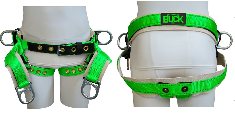 Product Number: 1383 Product Name: Fixed 4 D-Ring Single Cotton Back Saddle (Tongue Buckle Leg Straps) Buckle Type: Tongue Buckle Buckle Material: Steel Number Of D-Rings: 2 Positioning, 2 Floating D-Ring Material: Steel Belt Strap Material: Nylon Back Pad Material: Single Thick Cotton Accessory Loops: No Tape Thong: No Removable Belt Strap: No Floating Suspension Ring: No Full Floating D-Rings: Yes Tool Loops: No Pouch Tabs: No Leg Straps: Yes Leg Pad Connect: Tongue Buckle Back Pad Width: 3" Belt Strap Width: 1.75" Thread/Stitching: Nylon Product Type: Work Positioning User Weight Capacity: 350 Lbs. Weight: 3.5 Lbs. Standards: Astm F887 Made In Usa?: Yes