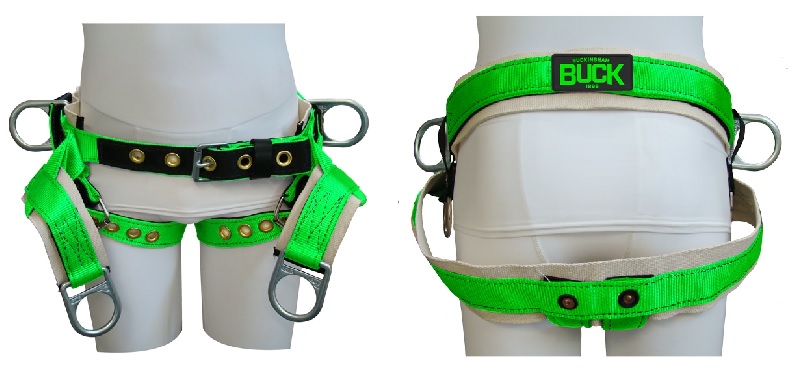 Product Number: 1383 Product Name: Fixed 4 D-Ring Single Cotton Back Saddle (Tongue Buckle Leg Straps) Buckle Type: Tongue Buckle Buckle Material: Steel Number Of D-Rings: 2 Positioning, 2 Floating D-Ring Material: Steel Belt Strap Material: Nylon Back Pad Material: Single Thick Cotton Accessory Loops: No Tape Thong: No Removable Belt Strap: No Floating Suspension Ring: No Full Floating D-Rings: Yes Tool Loops: No Pouch Tabs: No Leg Straps: Yes Leg Pad Connect: Tongue Buckle Back Pad Width: 3" Belt Strap Width: 1.75" Thread/Stitching: Nylon Product Type: Work Positioning User Weight Capacity: 350 Lbs. Weight: 3.5 Lbs. Standards: Astm F887 Made In Usa?: Yes